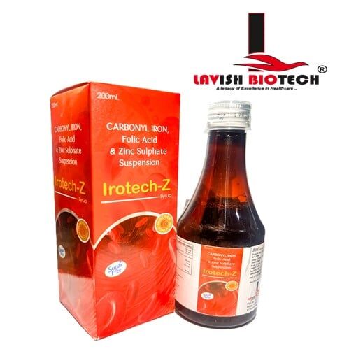 Carbonyl Iron, Folic Acid and Zinc Sulphate Suspension serve as a nutritional supplement for those individuals who are experiencing anaemia or a deficiency in red blood cells within their body. The individual may also have insufficient haemoglobin in their blood. This syrup offers greater bioavailability compared to other iron salts. It is released gradually through the action of gastric acid.
