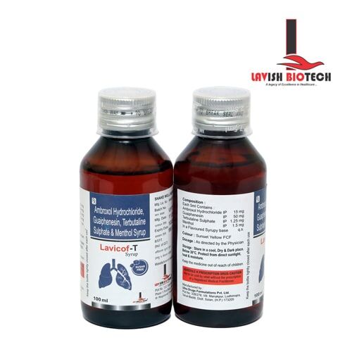 LAVICOF -T consists of ambroxol, terbutaline, guaifenesin and menthol. Ambroxol is an “atroso” agent that promotes sputum/cough production. It is also a “mucolytic agent” that makes breathing easier and sputum less viscous. Terbutaline is a bronchodilator and works by widening and relaxing the airways (bronchi) in the lungs. Guaifenesin is also a “standby” agent. It reduces the thickness or viscosity of bronchial secretions (mucus) and increases mucus flow, making coughing easier. Menthol is an organic flavour that creates a cooling sensation and relieves throat irritation.