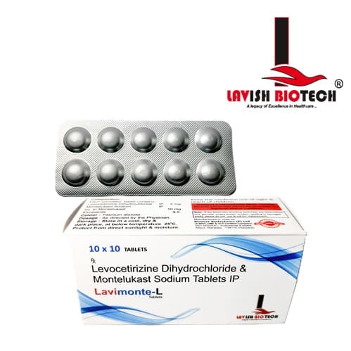 Levocetirizine Dihydrochloride and Montelukast Sodium Tablets are a medicine used to treat allergies and breathing problems. This combination medicine helps people who suffer from sneezing, runny nose, stuffy nose, watery eyes, and breathing issues like asthma. It provides relief from allergies caused by dust, pollen, pet hair, and other environmental triggers. This tablet is also helpful for people with long-term breathing problems like asthma and hay fever.