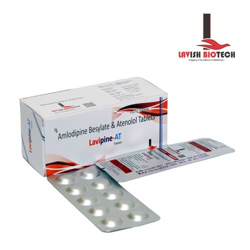 Lavipine-AT (Amlodipine Besylate & Atenolol Tablets) is a combined medicine that contains Amlodipine Besylate and Atenolol. These tablets are mainly used to treat high blood pressure (hypertension). Amlodipine belongs to a class of drugs known as calcium channel blockers. It works by blocking the entry of calcium from the smooth muscle cells of the heart and blood vessels. While Atenolol is a beta-blocker. This works by stopping the effects of adrenaline on the heart. This combination of Amlodipine and Atenolol works by relaxing blood vessels and decreasing the heart rate which allows the heart to pump more efficiently.