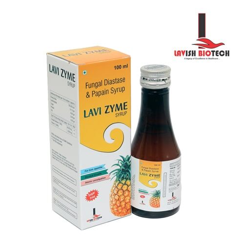 Lavi Zyme contains two digestive enzymes, namely fungal diastase and pepsin. Fungal diastase is a starch-hydrolyzing enzyme that breaks down complex carbohydrates (polysaccharides, i.e. starch) into simple carbohydrates (monosaccharides, i.e. simple sugar). Promotes digestion in chronic diseases, abdominal fullness, flatulence and indigestion. On the other hand, pepsin is a protein-digesting enzyme that helps break down larger protein molecules into smaller protein units (amino acids). Fungal Diastase and Pepsin Syrup therefore treat indigestion and stomach problems together.
